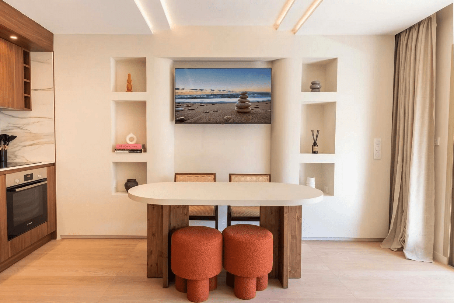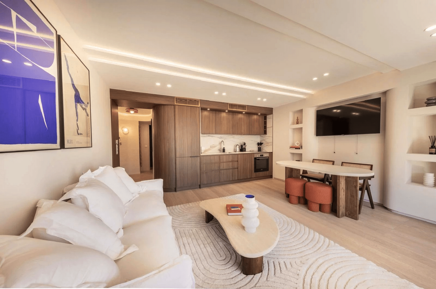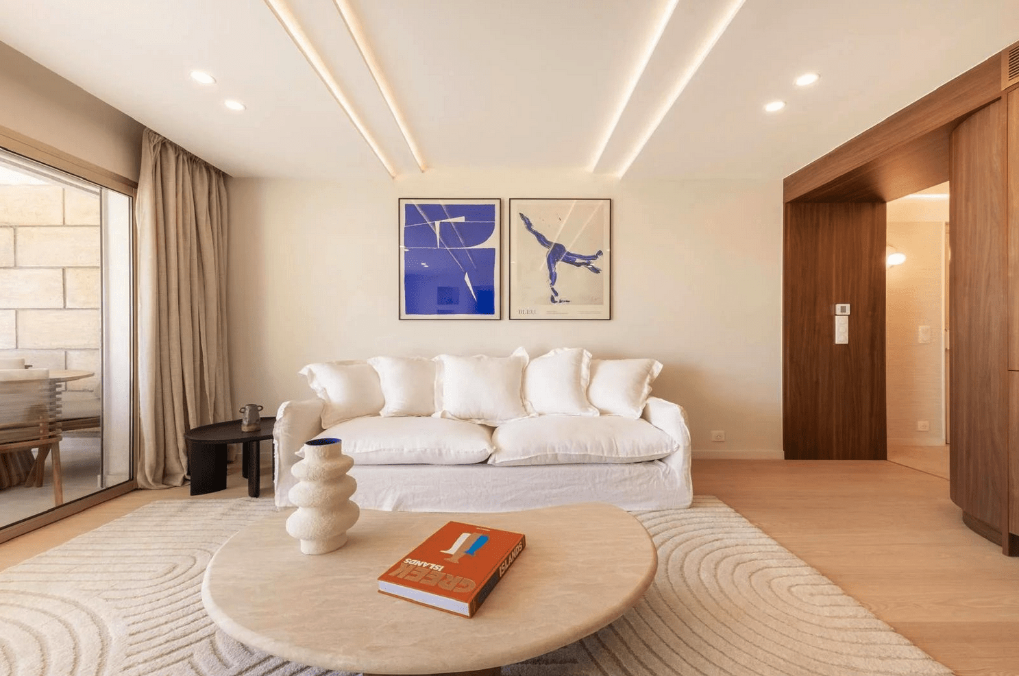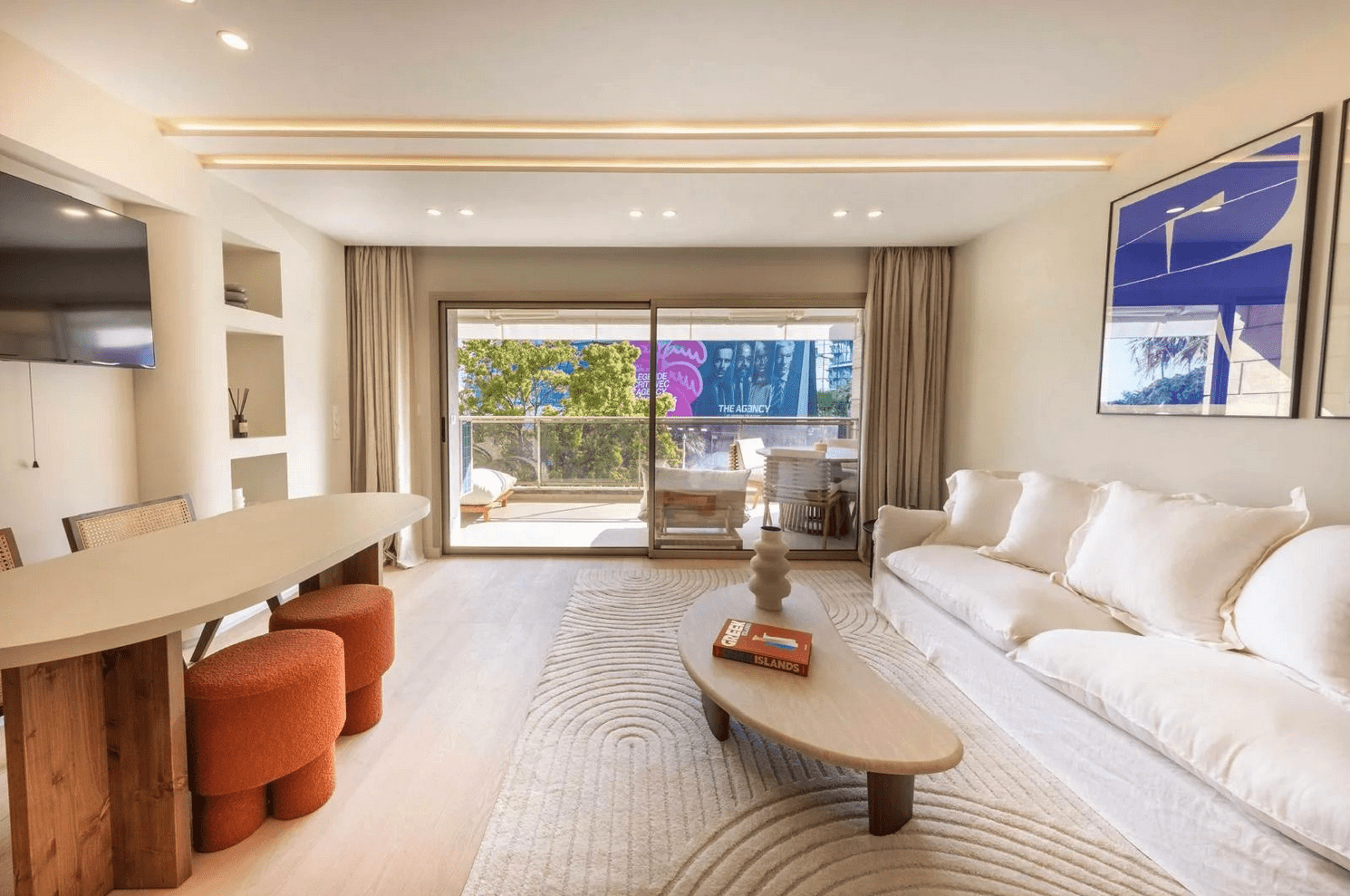 • A bright living room/living room opening onto a spacious terrace with a direct view of the Palais des Festivals de Cannes