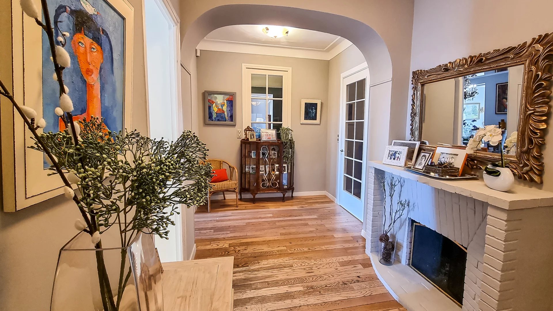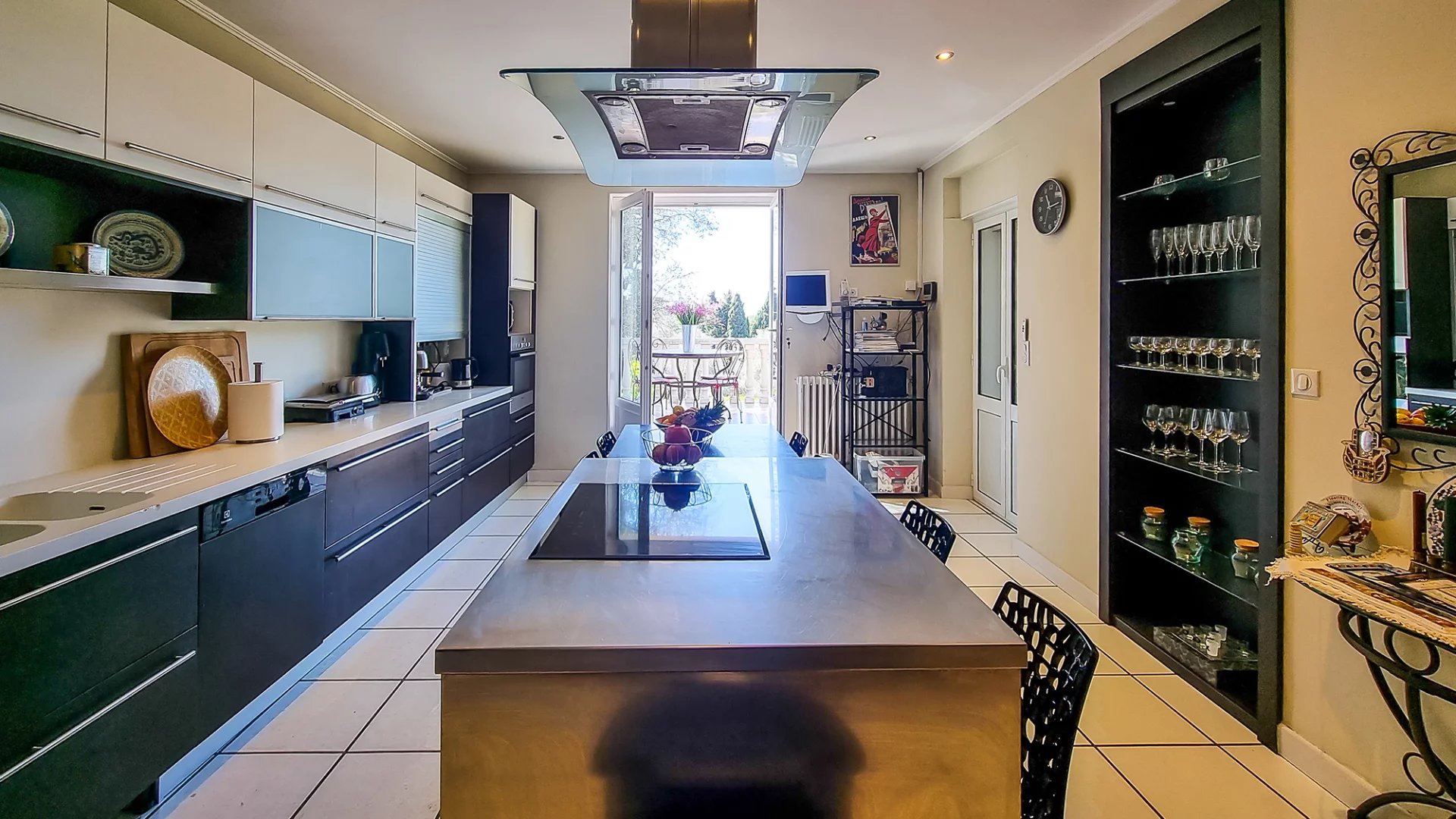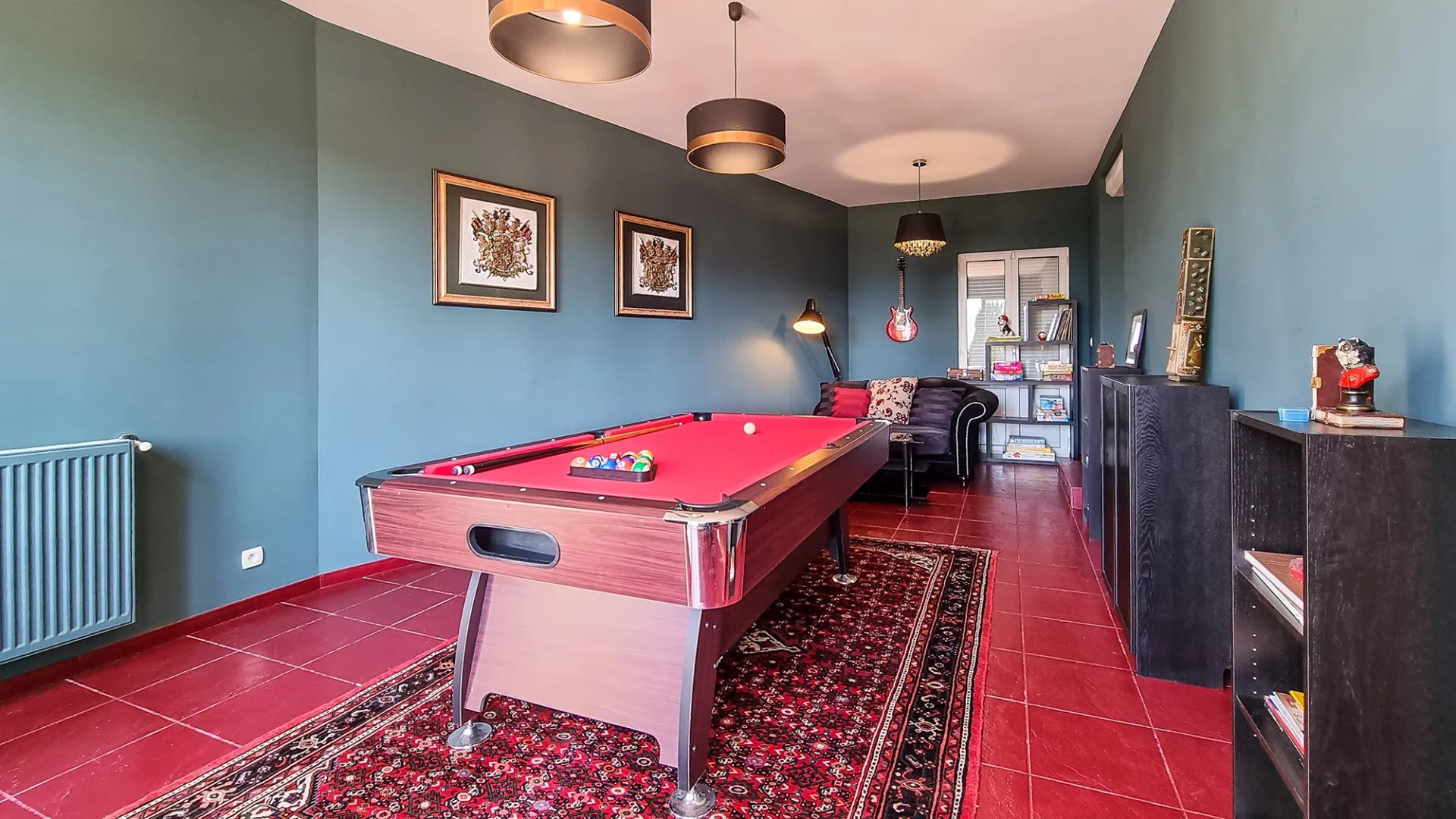 The spacious, bright, and welcoming living room offers several living areas, extended by a large, separate, and welcoming kitchen.