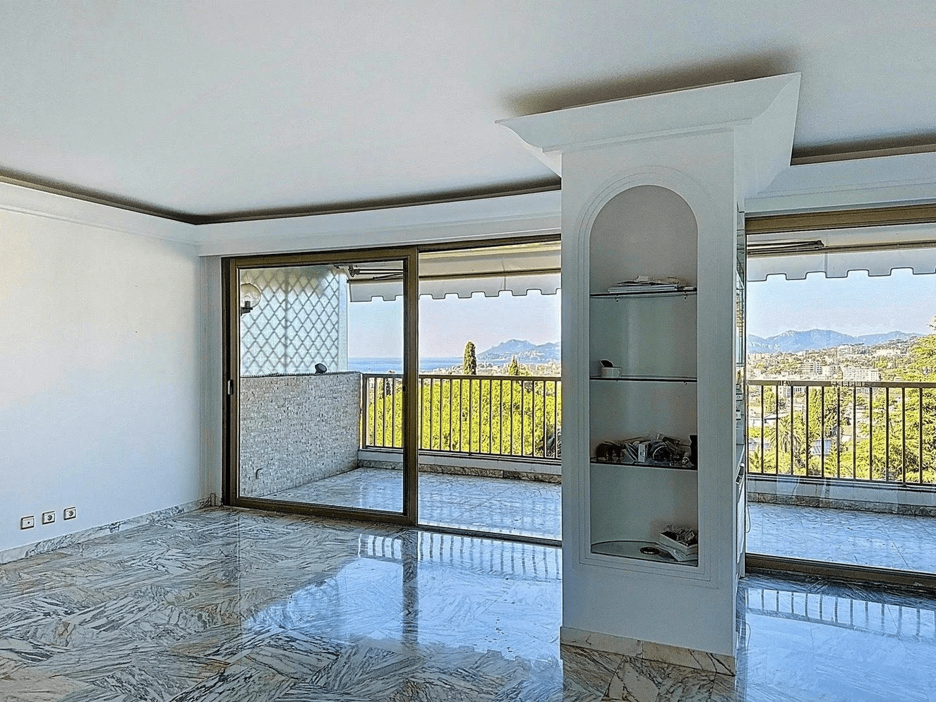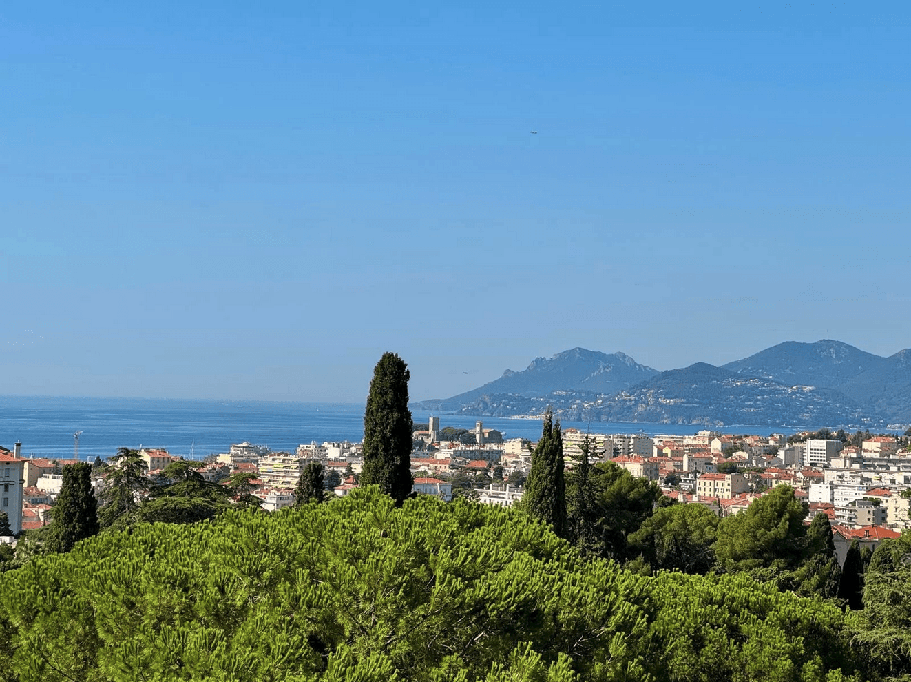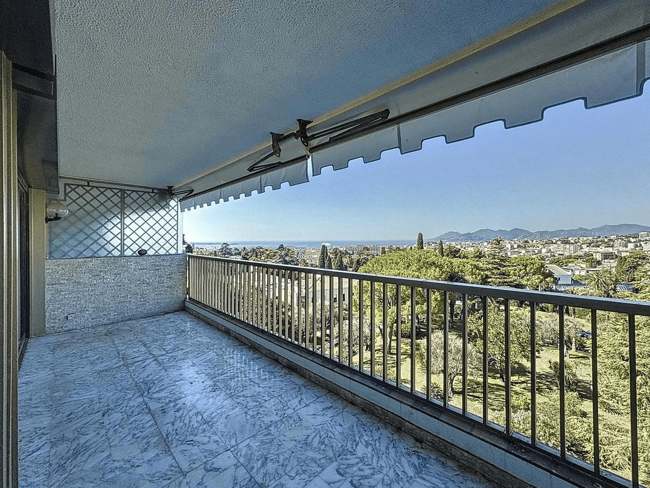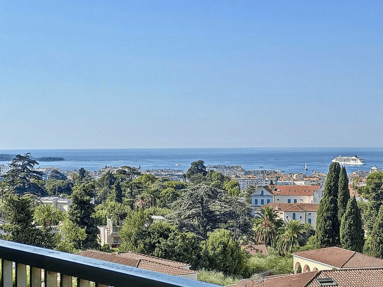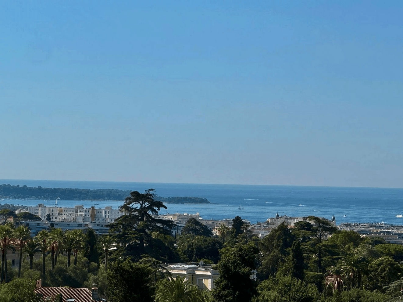 The apartment benefits from a superb 18 m² terrace facing south-west, offering a breathtaking view of the Lérins islands, the entire bay of Cannes and the majestic Estérel mountains.