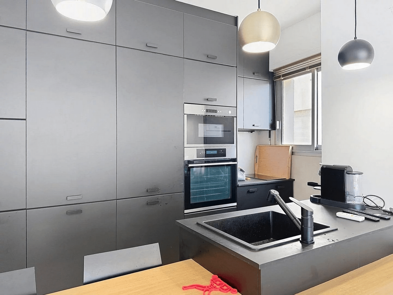 – a bright living room with fully equipped American kitchen,