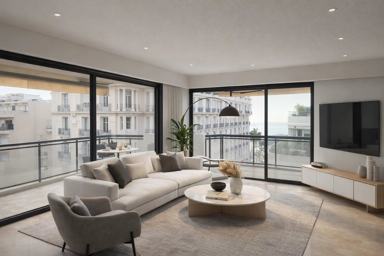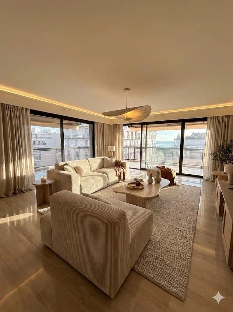 Located in one of the most prestigious residences on the Croisette, Le Jardin de la Croisette, discover this unique top floor, rare on the market, offering two magnificent sea views: on one side overlooking the Carlton, on the other overlooking the Miramar